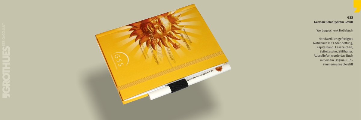 Das GSS Notizbuch mit Zimmermanns-Bleistift im Taschenformat war als Werbegeschenk für Dachdecker und Solarteure konzipiert und erfreute sich großer Beliebtheit.